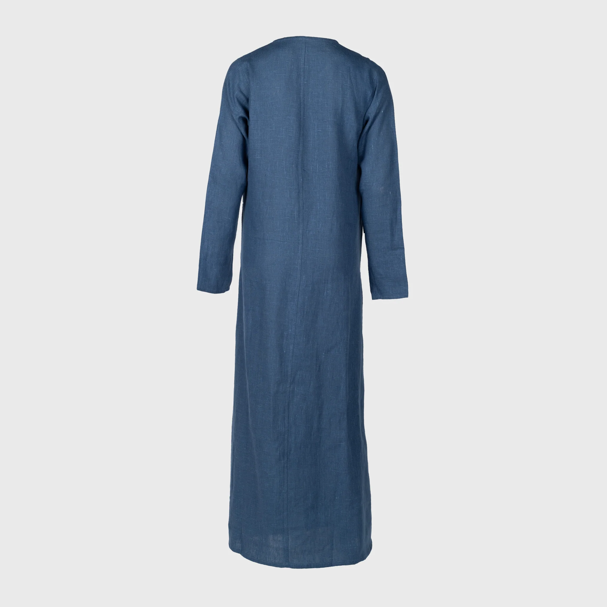 En bekväm linneklänning baserad på historiska källor. Ofärgade linneklänningar bars av de flesta kvinnor under vikingatiden - en blå hade varit en antydan på att ägaren var rik.